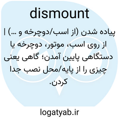 پیاده شدن (از اسب/دوچرخه و …) | از روی اسب، موتور، دوچرخه یا دستگاهی پایین آمدن؛ گاهی یعنی چیزی را از پایه/محل نصب جدا کردن.