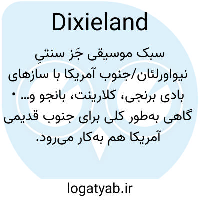 📌 (گاهی با حروف کوچک نوشته میشود)، سبکی از جاز، که خاستگاه آن نیواورلئان است، و توسط گروه کوچکی از سازها، مانند ترومپت، ترومبون، کلارینت، پیانو و درامز نواخته میشود، و با ریتم چهار-چهار با تأکید قوی و تکنوازیها و گروههای موسیقی پرانرژی و شبهبداهه مشخص میشود.