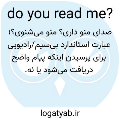 📌 آیا من را میفهمی؟ مثلاً، من از این همه جلسه خسته شدهام - آیا من را میفهمی؟ این عبارت در اصل برای پیامهایی که از طریق رادیو یا تلفن دریافت میشوند، به کار میرود. [حدود ۱۹۳۰]