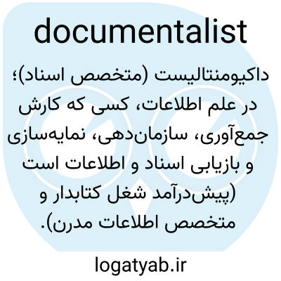 داکیومنتالیست (متخصص اسناد)؛ در علم اطلاعات، کسی که کارش جمع‌آوری، سازمان‌دهی، نمایه‌سازی و بازیابی اسناد و اطلاعات است (پیش‌درآمد شغل کتابدار و متخصص اطلاعات مدرن).