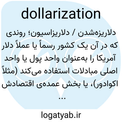 دلاریزه‌شدن / دلاریزاسیون؛ روندی که در آن یک کشور رسماً یا عملاً دلار آمریکا را به‌عنوان واحد پول یا واحد اصلی مبادلات استفاده می‌کند (مثلاً اکوادور)، یا بخش عمده‌ی اقتصادش به دلار می‌چرخد.