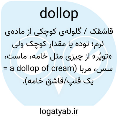 قاشقک / گلوله‌ی کوچکی از ماده‌ی نرم؛ توده یا مقدار کوچک ولی «توپُر» از چیزی مثل خامه، ماست، سس، مربا (a dollop of cream = یک قلپ/قاشق خامه).