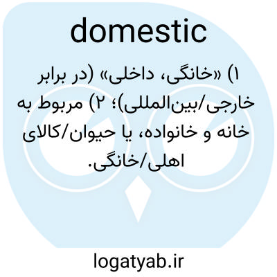 ۱) «خانگی، داخلی» (در برابر خارجی/بین‌المللی)؛ ۲) مربوط به خانه و خانواده، یا حیوان/کالای اهلی/خانگی.