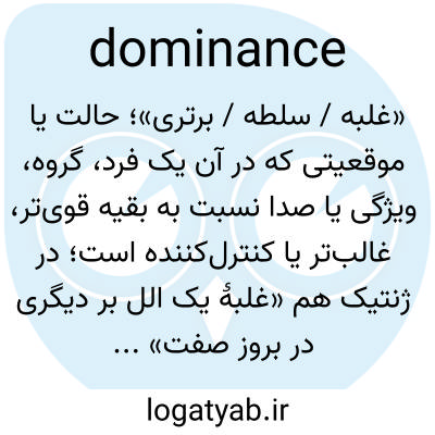 📌 رفتار حیوانی، جایگاه والا در یک گروه اجتماعی، که معمولاً در نتیجه پرخاشگری به دست میآید، که شامل تمایل به اولویت دادن به دسترسی به منابع محدود، مانند غذا، جفت یا فضا میشود.