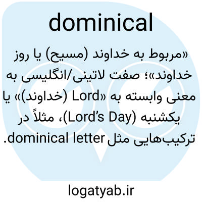 «مربوط به خداوند (مسیح) یا روز خداوند»؛ صفت لاتینی/انگلیسی به معنی وابسته به «Lord (خداوند)» یا یکشنبه (Lord’s Day)، مثلاً در ترکیب‌هایی مثل dominical letter.