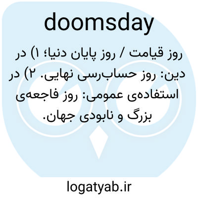 روز قیامت / روز پایان دنیا؛ ۱) در دین: روز حساب‌رسی نهایی. ۲) در استفاده‌ی عمومی: روز فاجعه‌ی بزرگ و نابودی جهان.
