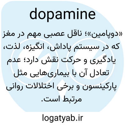📌 بیوشیمی، یک انتقالدهنده عصبی کاتکولآمین در سیستم عصبی مرکزی، شبکیه و گانگلیونهای سمپاتیک، که در مغز برای کمک به تنظیم حرکت و احساسات عمل میکند: کمبود آن ممکن است باعث بیماری پارکینسون شود.