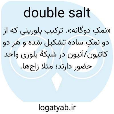 📌 نمکی که به صورت یک ماده واحد متبلور میشود اما هنگام حل شدن به صورت دو نمک مجزا یونیزه میشود، مانند کارنالیت، KMgCl3⋅6H2O.