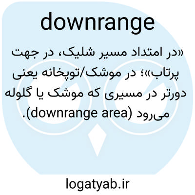 «در امتداد مسیر شلیک، در جهت پرتاب»؛ در موشک/توپخانه یعنی دورتر در مسیری که موشک یا گلوله می‌رود (downrange area).
