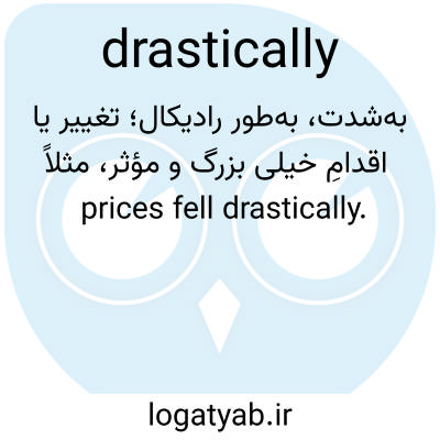 به‌شدت، به‌طور رادیکال؛ تغییر یا اقدامِ خیلی بزرگ و مؤثر، مثلاً prices fell drastically.
