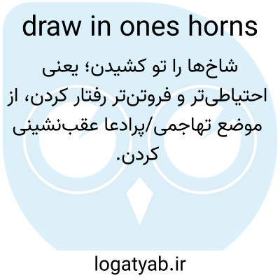 شاخ خود را به درون کشیدن؛ از ترس، ادعایی را پس گرفتن: استعارهای برگرفته از حلزون که از ترس خطر، شاخهایش را به درون میکشد و به لاک خود پناه میبرد.