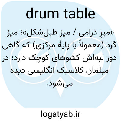 «میزِ درامی / میز طبل‌شکل»؛ میز گرد (معمولاً با پایهٔ مرکزی) که گاهی دور لبه‌اش کشوهای کوچک دارد؛ در مبلمان کلاسیک انگلیسی دیده می‌شود.