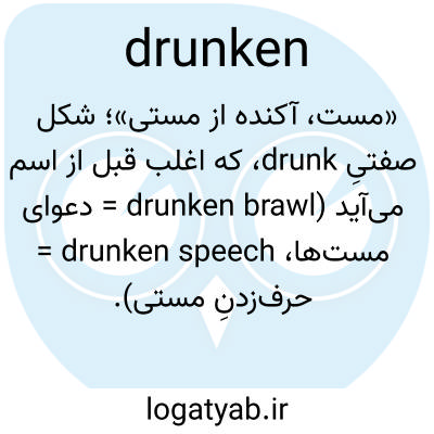 «مست، آکنده از مستی»؛ شکل صفتیِ drunk، که اغلب قبل از اسم می‌آید (drunken brawl = دعوای مست‌ها، drunken speech = حرف‌زدنِ مستی).