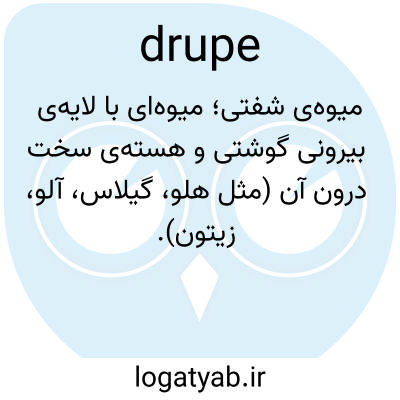 📌 هر میوهای، مانند هلو، گیلاس، آلو و غیره، که از یک پوست بیرونی، یک لایه میانی معمولاً گوشتالو و آبدار، و یک پوسته داخلی سخت و چوبی که معمولاً یک دانه را در بر میگیرد، تشکیل شده است.