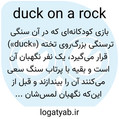 📌 بازی کودکانهای است که در آن یک بازیکن بالای سنگی که روی صخرهای قرار دارد، نگهبانی میدهد و بازیکنان دیگر سعی میکنند با پرتاب سنگ دیگر به نوبت، آن را بیندازند: اگر پرتابکننده هنگام تلاش برای برداشتن سنگ توسط نگهبان علامتگذاری شود، دو بازیکن جای خود را عوض میکنند.