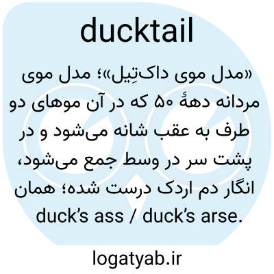 «مدل موی داک‌تِیل»؛ مدل موی مردانه دههٔ ۵۰ که در آن موهای دو طرف به عقب شانه می‌شود و در پشت سر در وسط جمع می‌شود، انگار دم اردک درست شده؛ همان duck’s ass / duck’s arse.