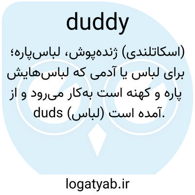 (اسکاتلندی) ژنده‌پوش، لباس‌پاره؛ برای لباس یا آدمی که لباس‌هایش پاره و کهنه است به‌کار می‌رود و از duds (لباس) آمده است.
