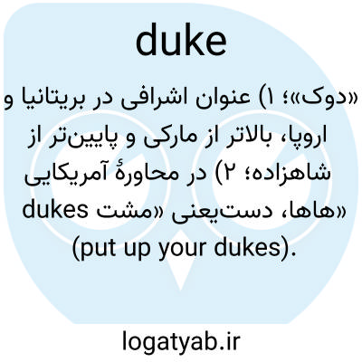 📌 اشرافزادهای بریتانیایی که بالاترین عنوان موروثی را خارج از خانواده سلطنتی دارد و بلافاصله پایینتر از شاهزاده و بالاتر از مارکی قرار میگیرد؛ عضوی از بالاترین رتبه اشراف بریتانیا.