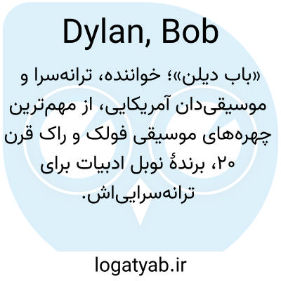 📌 خواننده و ترانهسرای فولک آمریکایی قرن بیستم (به موسیقی فولک مراجعه کنید). موسیقی او، با لحن قوی اعتراض اجتماعی، به ویژه در دهه ۱۹۶۰ محبوب بود، زمانی که او آهنگهایی مانند «دمیدن در باد»، «زمانه در حال تغییر است» و «مثل یک رولینگ استون» را نوشت.