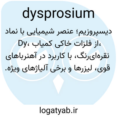دیسپروزیم؛ عنصر شیمیایی با نماد Dy، از فلزات خاکی کمیاب، نقره‌ای‌رنگ، با کاربرد در آهنرباهای قوی، لیزرها و برخی آلیاژهای ویژه.