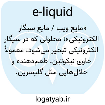 📌 مایعی که در سیگار الکترونیکی یا موارد مشابه به بخار تبدیل می‌شود و معمولاً حاوی نیکوتین، آب و پروپیلن گلیکول یا گلیسرول و گاهی طعم‌دهنده‌ها است.