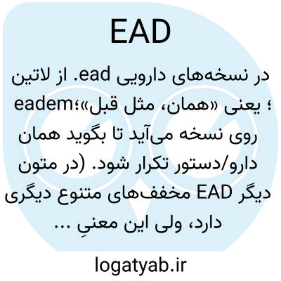 در نسخه‌های دارویی ead. از لاتین eadem؛ یعنی «همان، مثل قبل»؛ روی نسخه می‌آید تا بگوید همان دارو/دستور تکرار شود. (در متون دیگر EAD مخفف‌های متنوع دیگری دارد، ولی این معنیِ نسخه‌ای رایج است.)