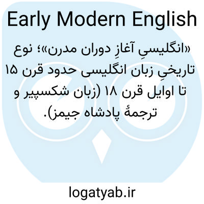 «انگلیسیِ آغازِ دوران مدرن»؛ نوع تاریخیِ زبان انگلیسی حدود قرن ۱۵ تا اوایل قرن ۱۸ (زبان شکسپیر و ترجمهٔ پادشاه جیمز).
