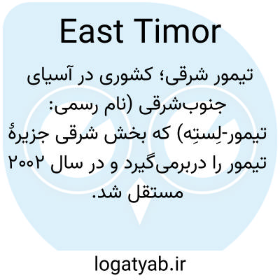 📌 جمهوری در نیمه شرقی تیمور؛ تنها کشور آسیایی که کاملاً در نیمکره جنوبی قرار دارد: مستعمره پرتغال ۱۷۰۲-۱۹۷۵، هرچند توسط ژاپن ۱۹۴۳-۱۹۴۵ اشغال شد؛ مستقل ۱۹۷۵-۱۹۷۶؛ ضمیمه اندونزی در سال ۱۹۷۶؛ مستقل از سال ۲۰۰۲. ۵۷۴۳ مایل مربع (۱۴۸۷۴ کیلومتر مربع). دیلی.