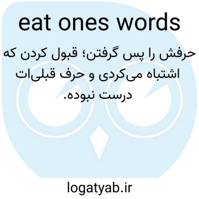 📌 مجبور شدن به پس گرفتن چیزی که گفته شده، مانند جملهی «رئیس جمهور به راحتی پیروز شد، بنابراین من مجبور شدم حرفم را پس بگیرم». این عبارت قبلاً در کتاب ضربالمثلهای انگلیسی جان ری (۱۶۷۰) ضربالمثل شده بود. [نیمه دوم دهه ۱۵۰۰]