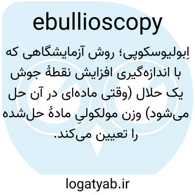 اِبولیوسکوپی؛ روش آزمایشگاهی که با اندازه‌گیری افزایش نقطهٔ جوش یک حلال (وقتی ماده‌ای در آن حل می‌شود) وزن مولکولیِ مادهٔ حل‌شده را تعیین می‌کند.
