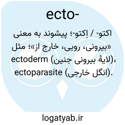 اکتو- / اِکتو-؛ پیشوند به معنی «بیرونی، رویی، خارج از»؛ مثل ectoderm (لایهٔ بیرونی جنین)، ectoparasite (انگل خارجی).
