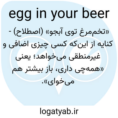 «تخم‌مرغ توی آبجو» (اصطلاح) - کنایه از این‌که کسی چیزی اضافی و غیرمنطقی می‌خواهد؛ یعنی «همه‌چی داری، باز بیشتر هم می‌خوای».