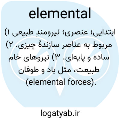 ابتدایی؛ عنصری؛ نیرومندِ طبیعی ۱) مربوط به عناصر سازندهٔ چیزی. ۲) ساده و پایه‌ای. ۳) نیروهای خام طبیعت، مثل باد و طوفان (elemental forces).