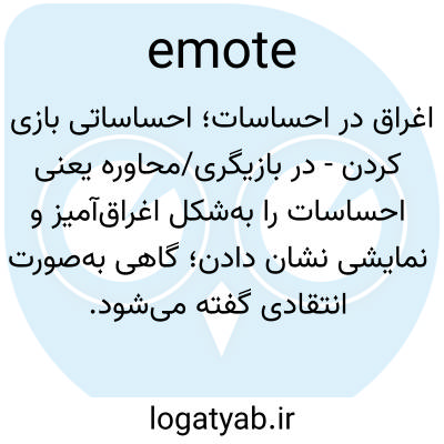 📌 (در یک چت آنلاین یا بازی ویدیویی) یک دستور یا کد تایپ شده که به شرح توصیفی از یک عمل یا احساس ترجمه می‌شود، یا باعث می‌شود که آواتار درون بازی یک عمل یا احساس را انجام دهد.