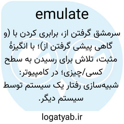 📌 تقلید (یک سیستم کامپیوتری خاص) با استفاده از یک سیستم نرم‌افزاری، که اغلب شامل یک ریزبرنامه یا کامپیوتر دیگری است که آن را قادر می‌سازد همان کار را انجام دهد، همان برنامه‌ها را اجرا کند و غیره، مانند سیستم اول.