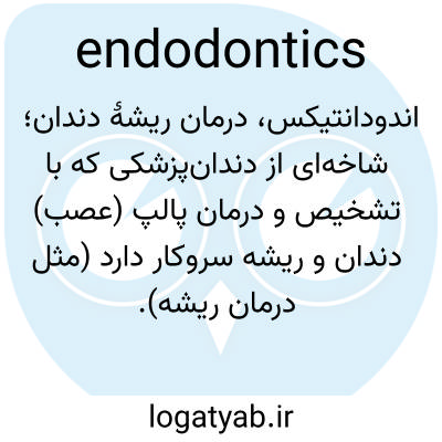 📌 شاخه‌ای از دندانپزشکی که با علت، تشخیص، پیشگیری و درمان بیماری‌های پالپ دندان سروکار دارد، معمولاً با برداشتن عصب و سایر بافت‌های حفره پالپ و جایگزینی آن با مواد پرکننده مناسب؛ درمان کانال پالپ؛ درمان ریشه دندان.