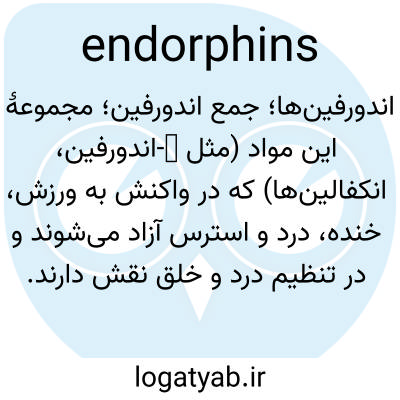 اندورفین‌ها؛ جمع اندورفین؛ مجموعهٔ این مواد (مثل β-اندورفین، انکفالین‌ها) که در واکنش به ورزش، خنده، درد و استرس آزاد می‌شوند و در تنظیم درد و خلق نقش دارند.