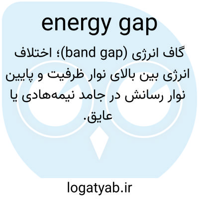 📌 فیزیک، اختلاف انرژی بین پایین نوار رسانش و بالای نوار ظرفیت الکترونها در یک جامد بلوری. برای مقادیر کمتر از حدود ۲eV، ماده نیمهرسانا در نظر گرفته میشود در حالی که برای مقادیر بالاتر، عایق در نظر گرفته میشود.