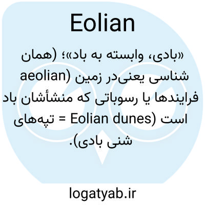 📌 مربوط به، ناشی از، یا حمل شده توسط باد. لس یک نهشته بادی است.