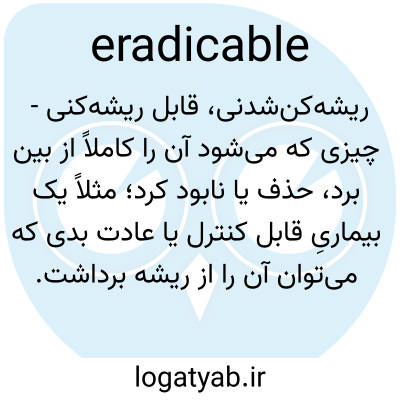 ریشه‌کن‌شدنی، قابل ریشه‌کنی - چیزی که می‌شود آن را کاملاً از بین برد، حذف یا نابود کرد؛ مثلاً یک بیماریِ قابل کنترل یا عادت بدی که می‌توان آن را از ریشه برداشت.