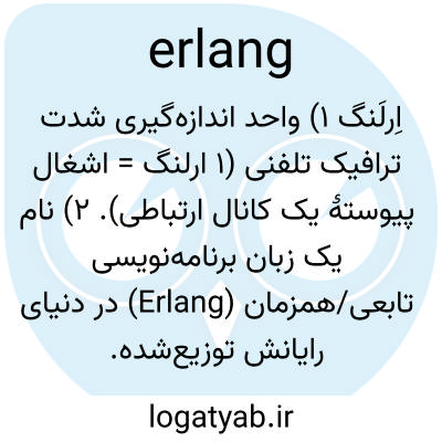 اِرلَنگ ۱) واحد اندازه‌گیری شدت ترافیک تلفنی (۱ ارلنگ = اشغال پیوستهٔ یک کانال ارتباطی). ۲) نام یک زبان برنامه‌نویسی تابعی/همزمان (Erlang) در دنیای رایانش توزیع‌شده.