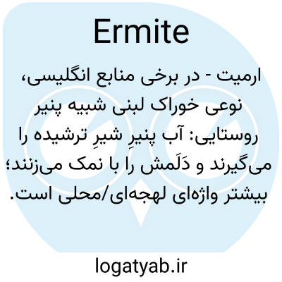 ارمیت - در برخی منابع انگلیسی، نوعی خوراک لبنی شبیه پنیر روستایی: آب پنیرِ شیرِ ترشیده را می‌گیرند و دَلَمش را با نمک می‌زنند؛ بیشتر واژه‌ای لهجه‌ای/محلی است.
