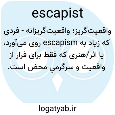 واقعیت‌گریز؛ واقعیت‌گریزانه - فردی که زیاد به escapism روی می‌آورد، یا اثر/هنری که فقط برای فرار از واقعیت و سرگرمیِ محض است.