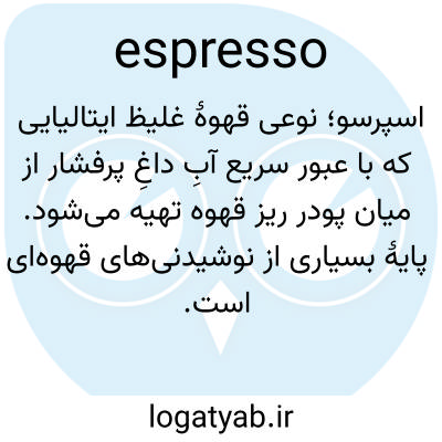 📌 قهوهای قوی که با عبور دادن بخار آب تحت فشار یا آب جوش از میان دانههای قهوه آسیاب شده و برشته شده تهیه میشود.