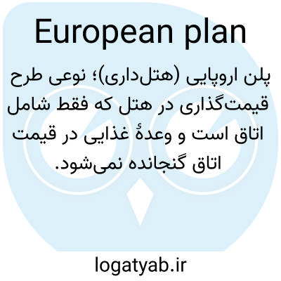 📌 (در هتلها) سیستمی برای پرداخت نرخ ثابت که شامل اقامت و خدمات میشود اما شامل وعدههای غذایی نمیشود. EP