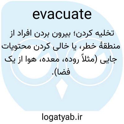 📌 خارج کردن افراد از (یک شهر، شهرک، ساختمان، منطقه و غیره) به دلایل ایمنی