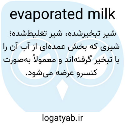 📌 شیر بدون شکر که با تبخیر آب تا تقریباً نصف وزن اولیه غلیظ و تغلیظ شده و سپس استریل و کنسرو می‌شود.