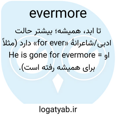 تا ابد، همیشه؛ بیشتر حالت ادبی/شاعرانۀ «for ever» دارد (مثلاً He is gone for evermore = او برای همیشه رفته است).
