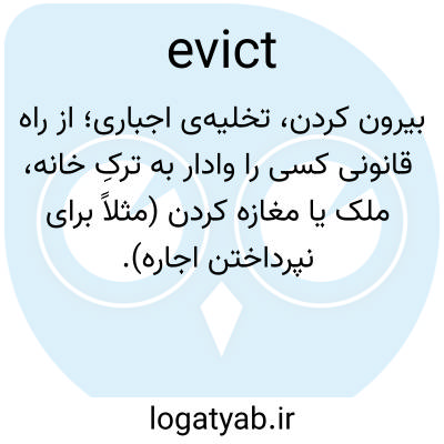 📌 بیرون کردن (یک شخص، به خصوص مستاجر) از زمین، ساختمان و غیره، از طریق قانونی، مثلاً به دلیل عدم پرداخت اجاره بها.