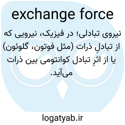 📌 نیرویی که از تبادل پیوسته ذرات بین دو یا چند جسم حاصل می‌شود. برای مثال، تبادل الکترون بین دو اتم یا مولکول، یک نیروی تبادلی است، همانطور که تبادل گلوئون‌ها بین کوارک‌ها در نیروی هسته‌ای قوی یک نیروی تبادلی است.